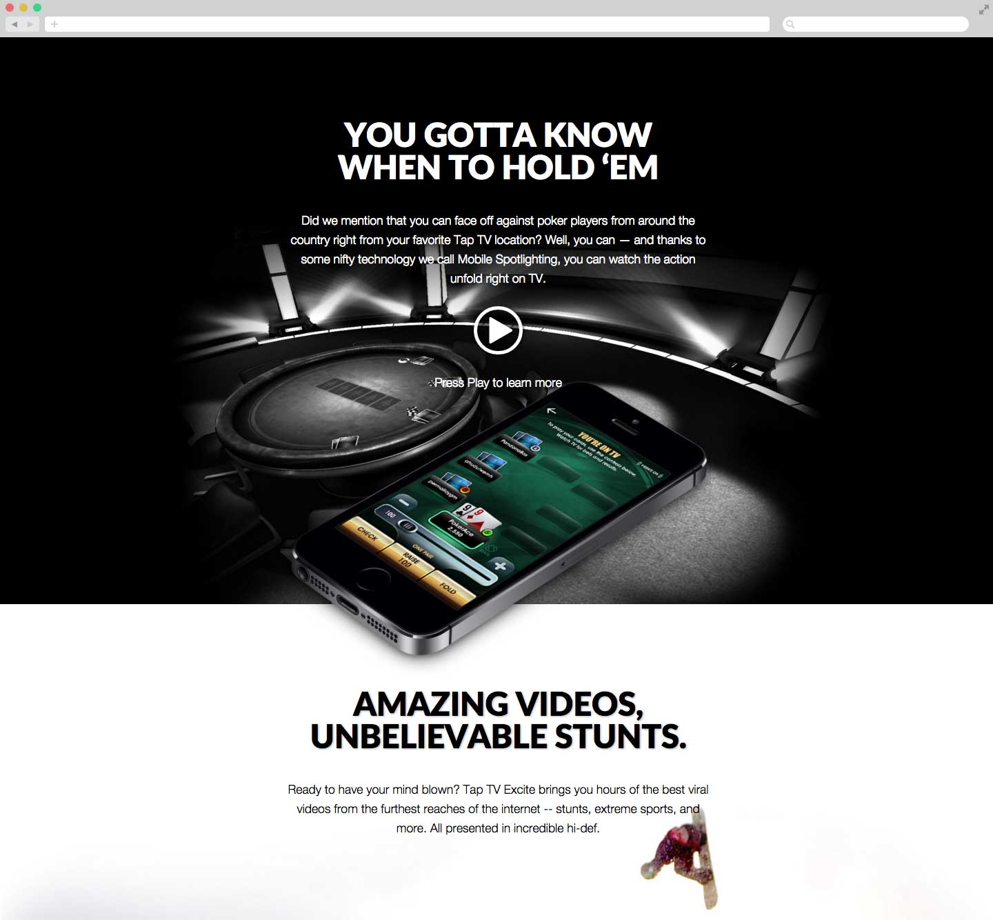 Tap Tv was a month away from public release when I started at AMI Entertainment. Not only did they need an elegant companion website to help spread the good word about Tap TV and all it has to offer, it needed supplement the app with a few key features.