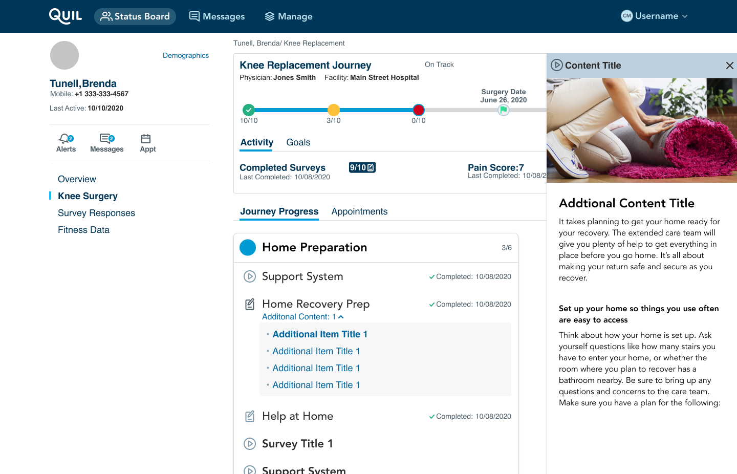 Healthcare Professionals have an extremely challenging working situation utlizizing many desparate systems. Knowing this up front Quil has to take a measured approach to getting provider adoption and value.